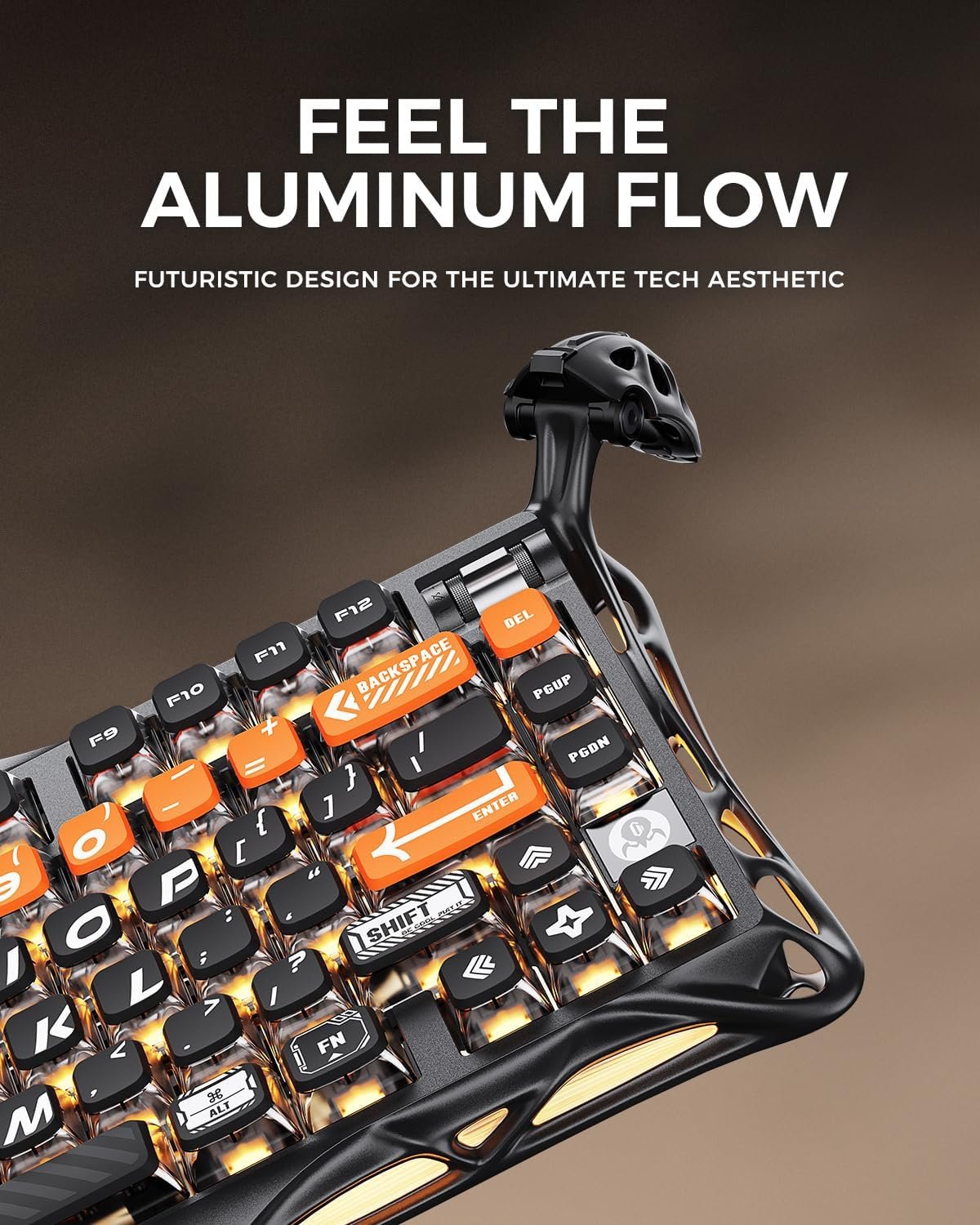 يأتي الكيبورد بهيكل مصنوع من سبائك الألمنيوم مع تصميم هيكلي (Skeleton Frame) يمنحه مظهرًا فريدًا مستوحى من الطابع الفينيقي/الخيالي، مع إحساس قوي وثابت أثناء الاستخدام.