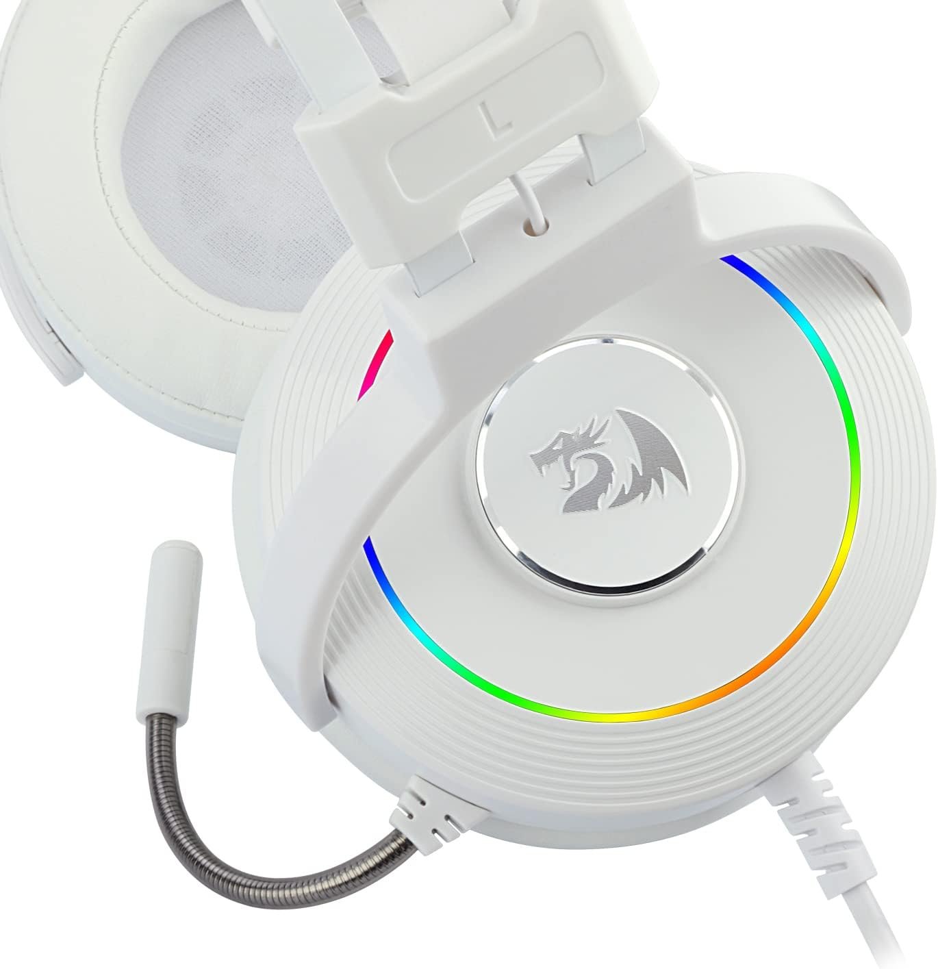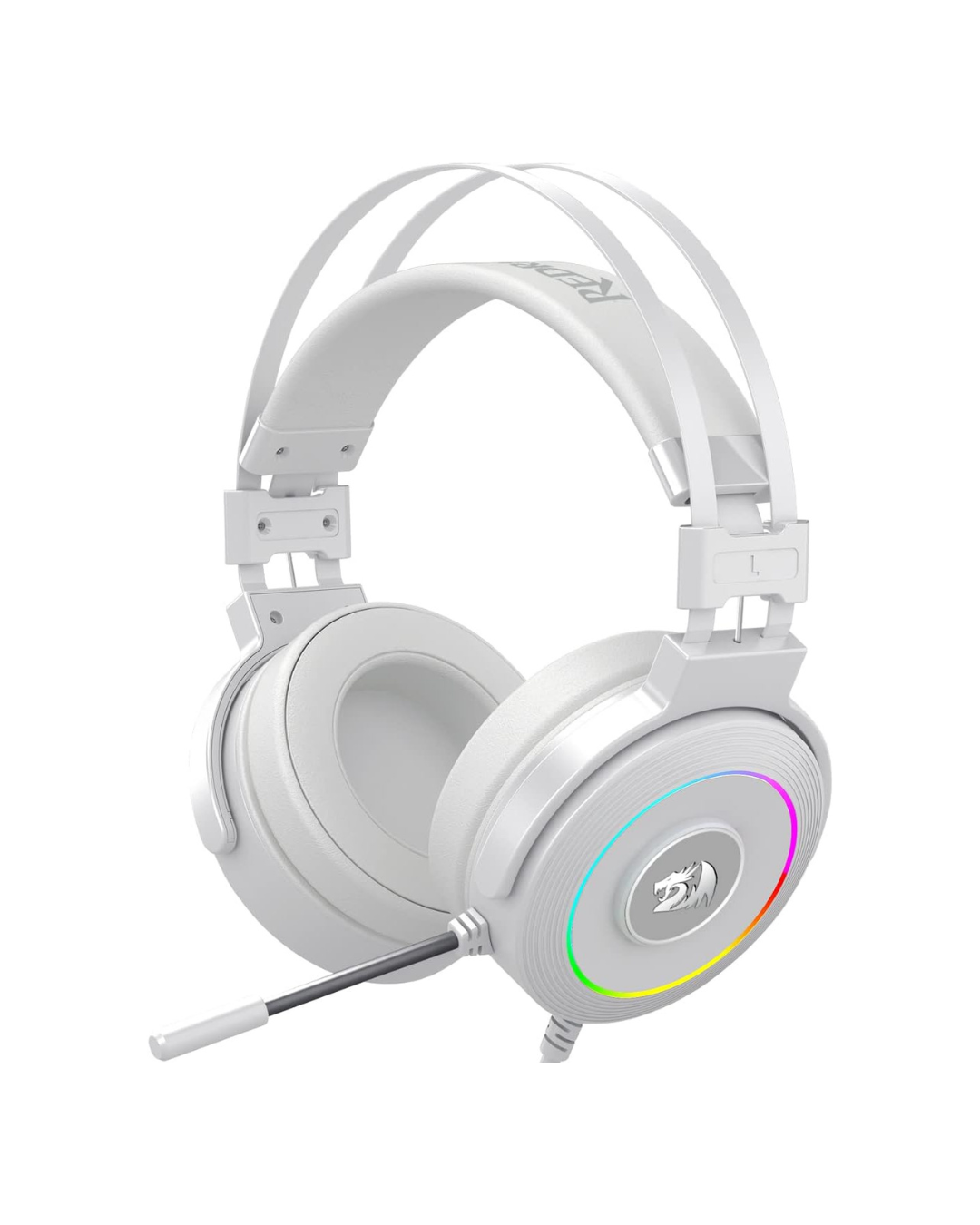 سماعة الألعاب Redragon Lamia H320W (White) هي سماعة مميزة بتصميم أنيق باللون الأبيض مع إضاءة RGB، مصممة لتقديم تجربة صوت غامرة ومريحة للاعبين.