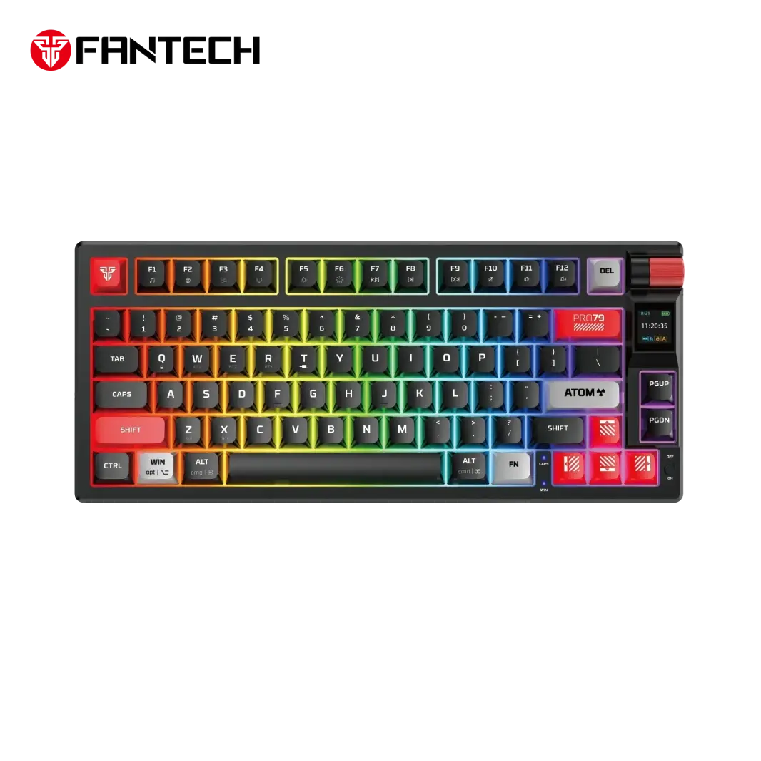 لوحة المفاتيح للألعاب الميكانيكية Fantech MK917 Atom Pro79 تقدم تجربة لعب احترافية بتصميم مدمج بنسبة 75% (79 مفتاح)، لتوفير مساحة أكبر لحركة الماوس مع الحفاظ على جميع الوظائف الأساسية.