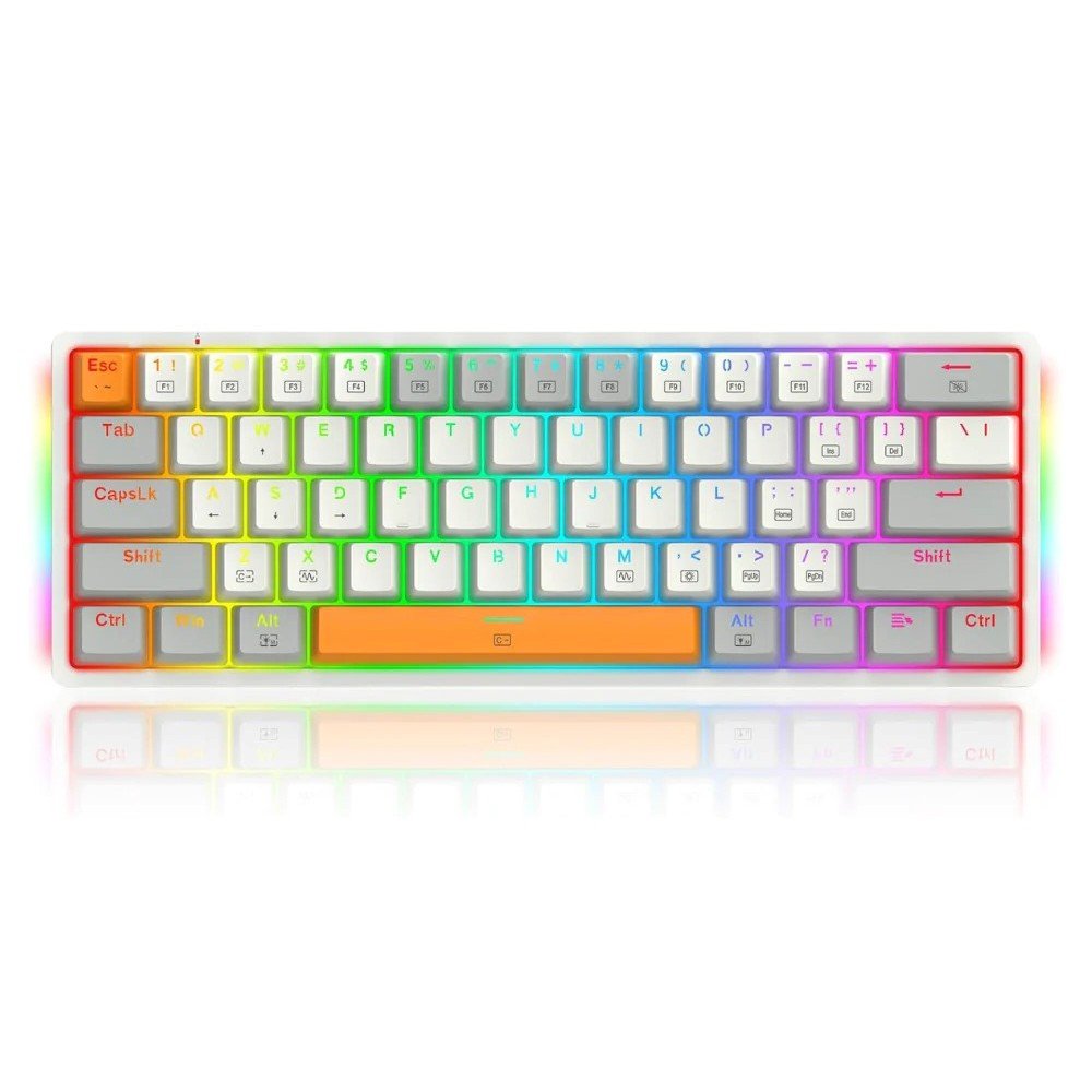 لوحة مفاتيح Redragon K642 Akali هي كيبورد ميكانيكي مدمج بحجم 60% (61 زر) مصمم للاعبين اللي بدهم مساحة أكبر على المكتب وSetup نظيف بدون أزرار إضافية.