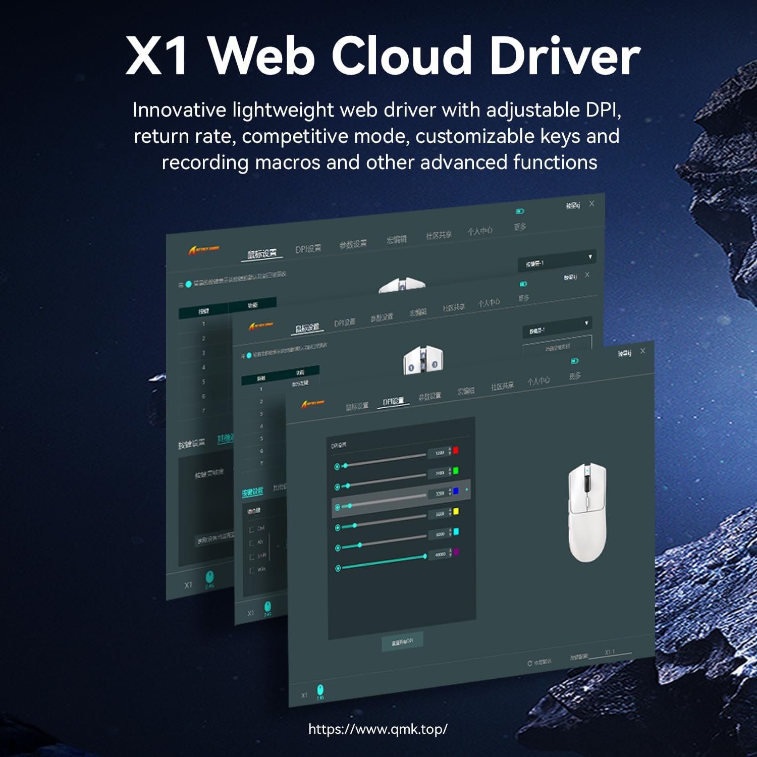 يدعم ماوس X1 الاتصال بثلاث طرق: سلكي USB‑C، لاسلكي 2.4G، وبلوتوث، ما يعطيك مرونة في الاستخدام على الكمبيوتر أو اللابتوب بدون تقطع.