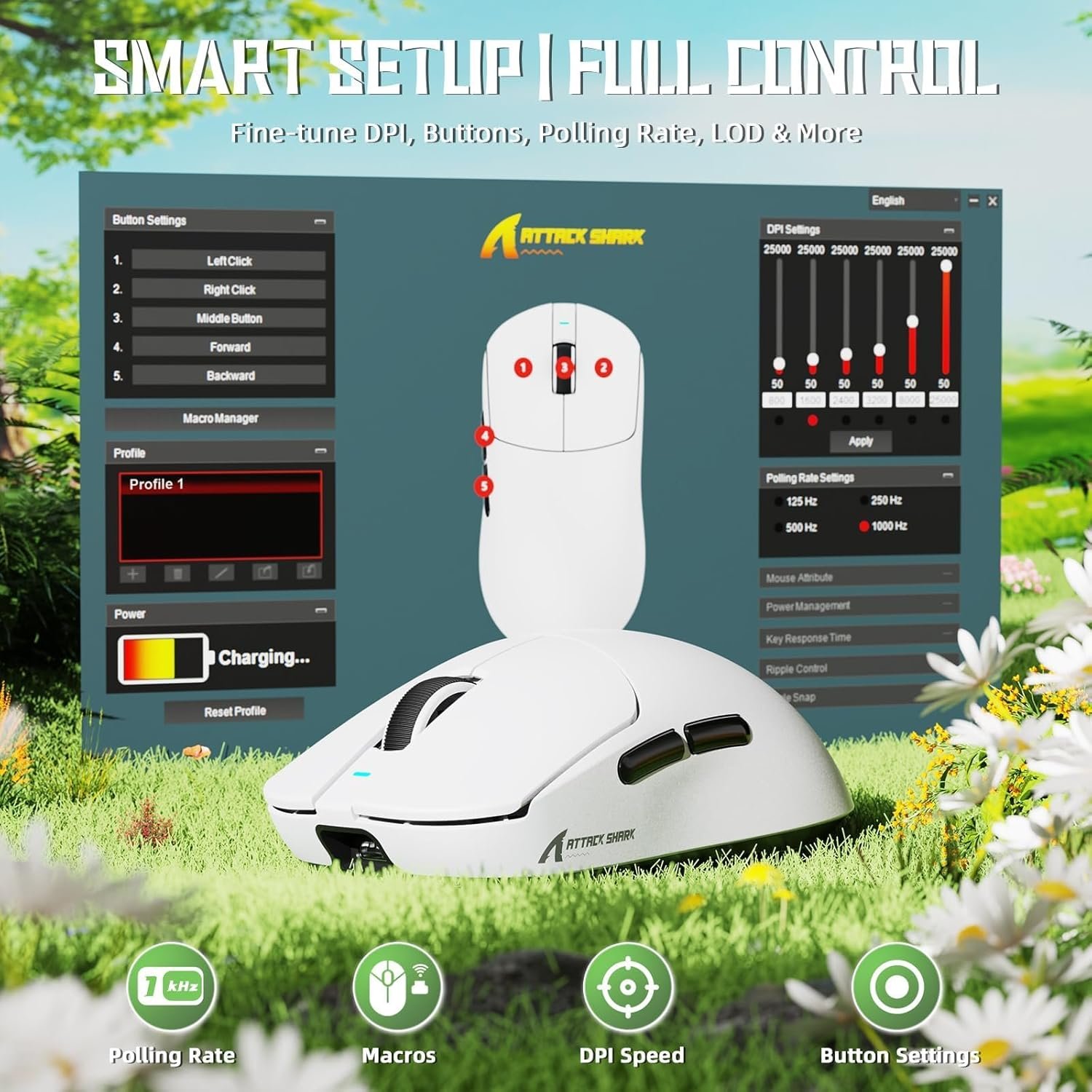 مزود بمستشعر PixArt PAW3311 بدقة قابلة للضبط حتى 25,000 DPI، مع معدل استجابة 1000 Hz لحركة دقيقة وسريعة في الألعاب.