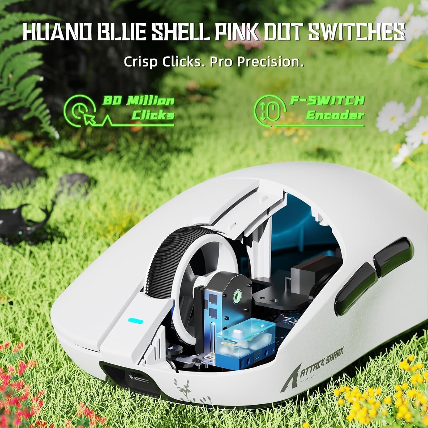 يتميز أيضًا بمفاتيح HUANO عالية التحمل تتحمل حتى 80 مليون نقرة، وأقدام PTFE توفر انزلاقًا سلسًا على مختلف الأسطح.