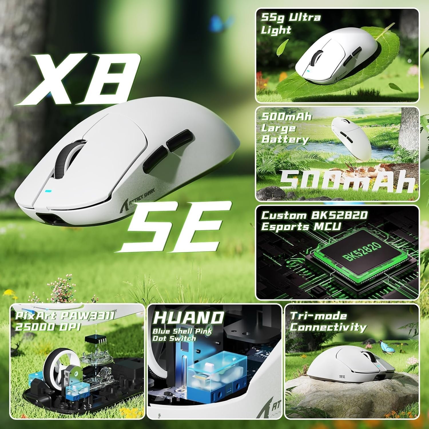 ماوس الألعاب ATTACK SHARK X8SE – خفيف، متعدد الاتصالات، ودقة عالية