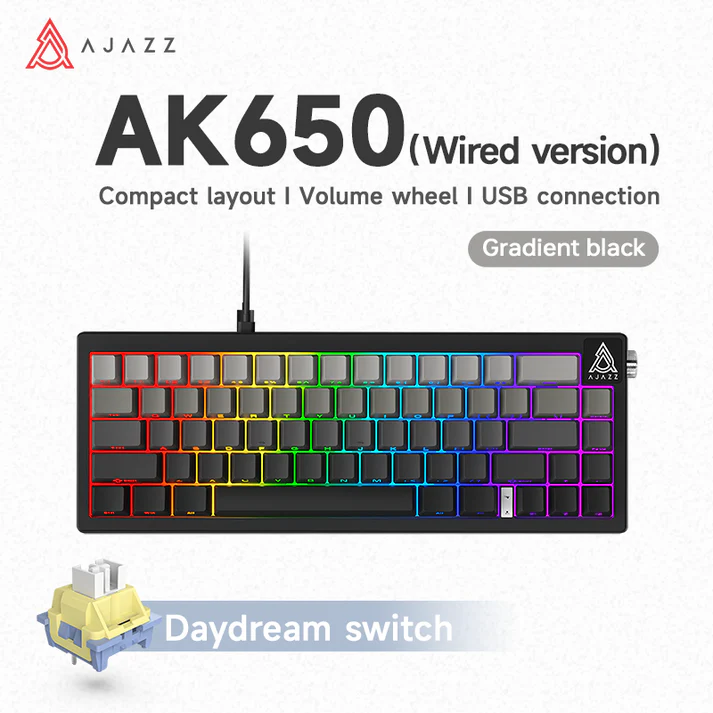 The AJAZZ AK650 Wired RGB Hot-Swappable Mechanical Keyboard is a compact, high-performance keyboard designed for gamers and enthusiasts who want customization and premium typing feel.