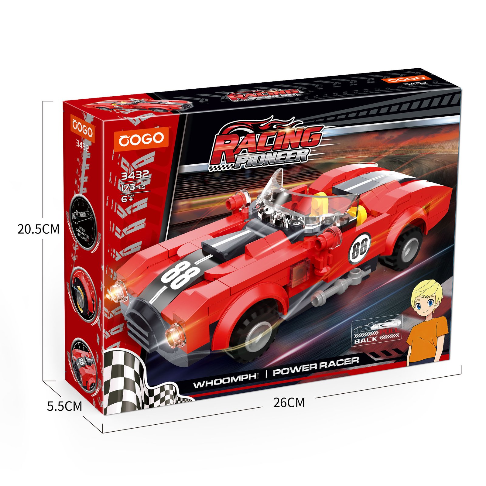Enjoy a dynamic building experience with the COGO 173 PCS Pull-Back Racing Car Set, combining construction fun with racing excitement.