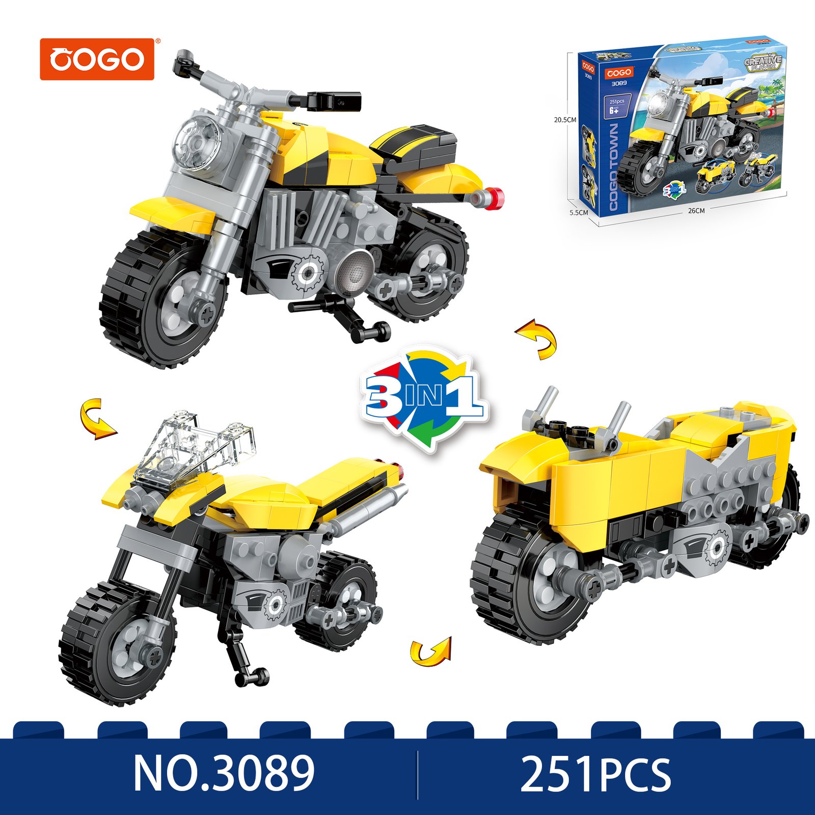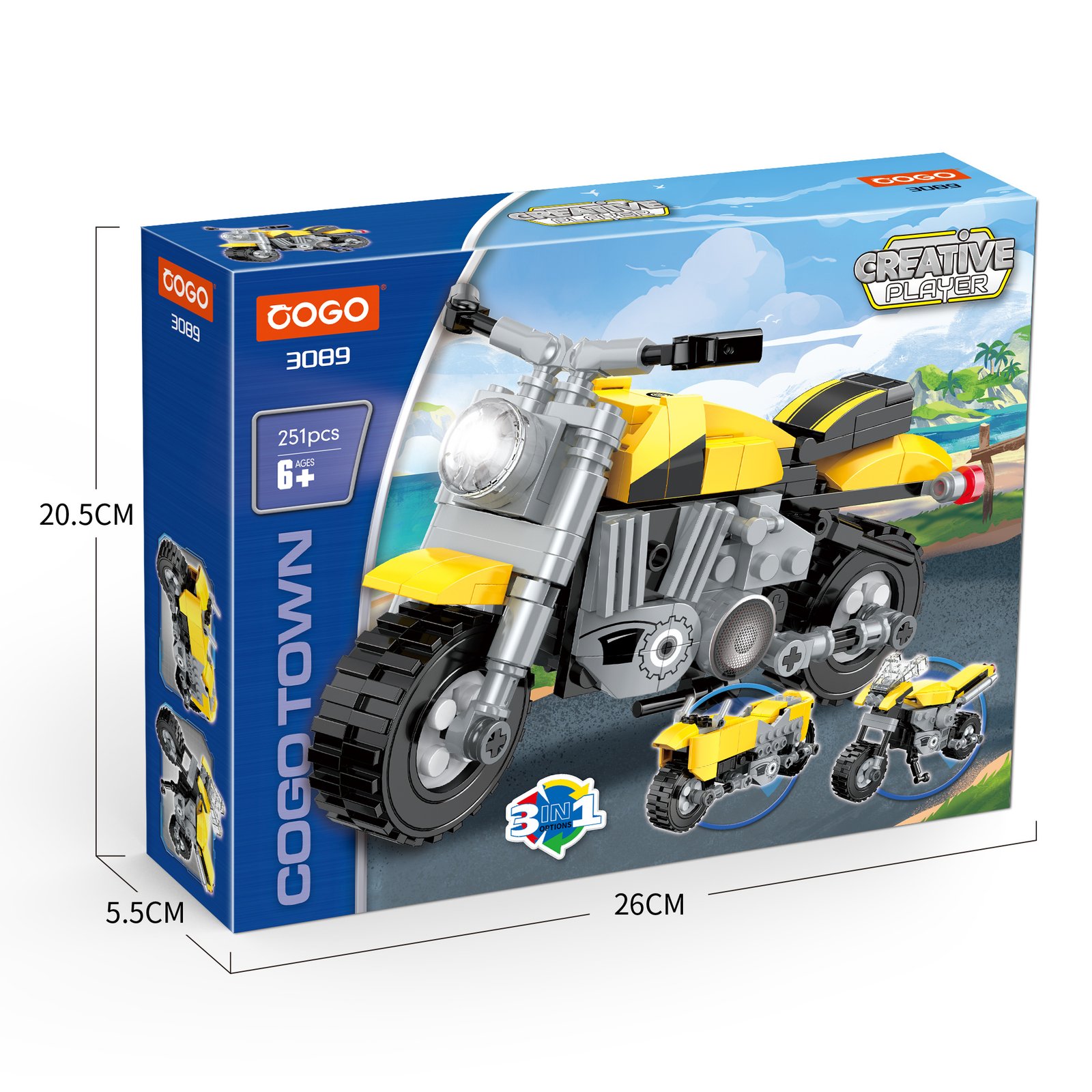 Enjoy an advanced and detailed building experience with the COGO 3-in-1 Tech Storm Motorcycle Set, designed for kids and enthusiasts who love mechanics and construction.