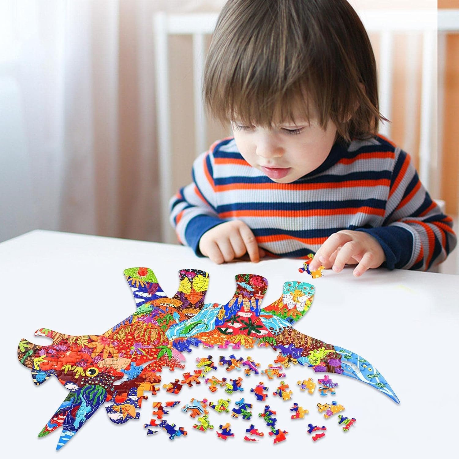Enjoy a fun and educational experience with the Triceratops Dinosaur Jigsaw Puzzle, designed to help kids develop thinking and problem-solving skills through an engaging dinosaur-themed puzzle.