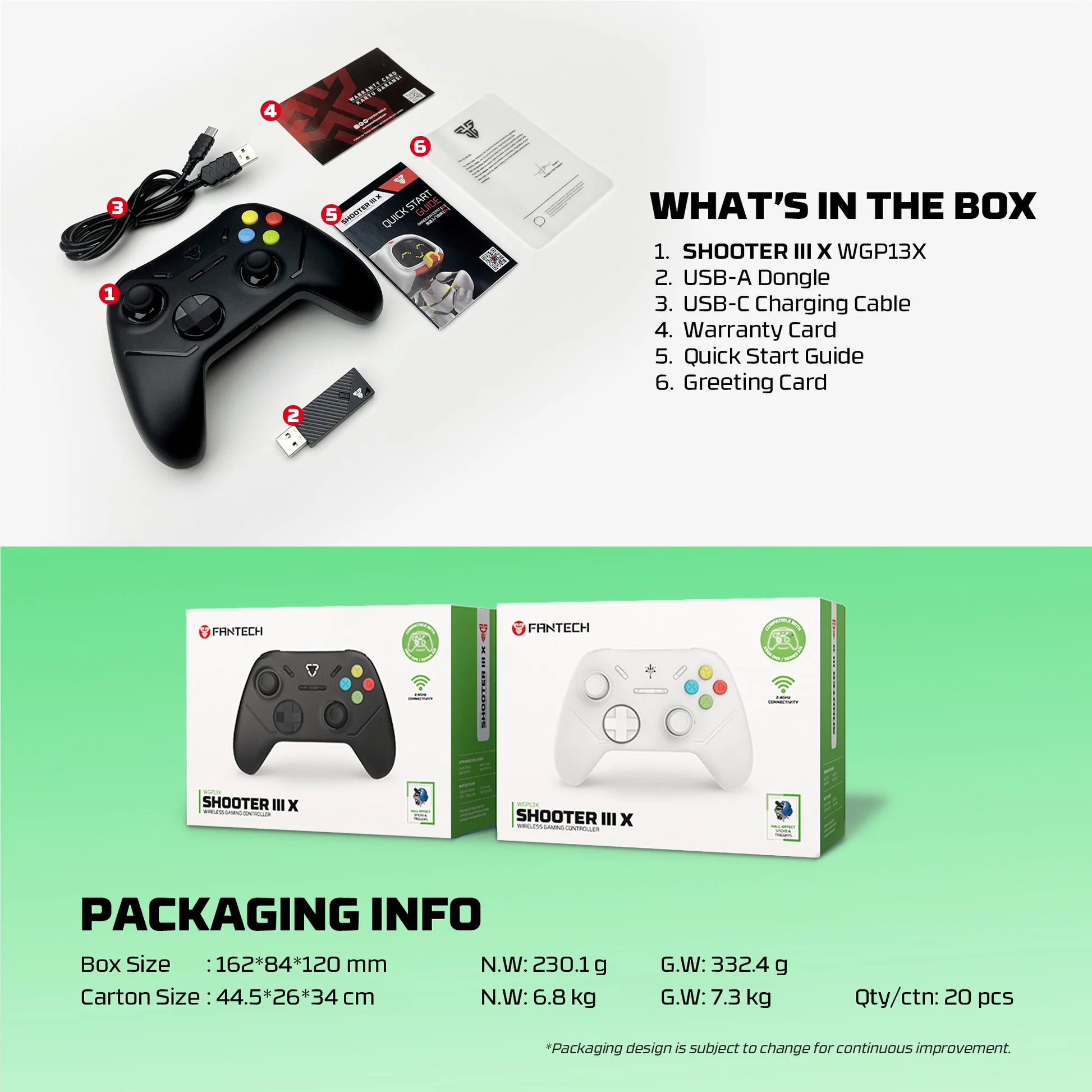 It features 2.4GHz wireless connectivity with a range of up to 10 meters, providing stable, low-latency gameplay.