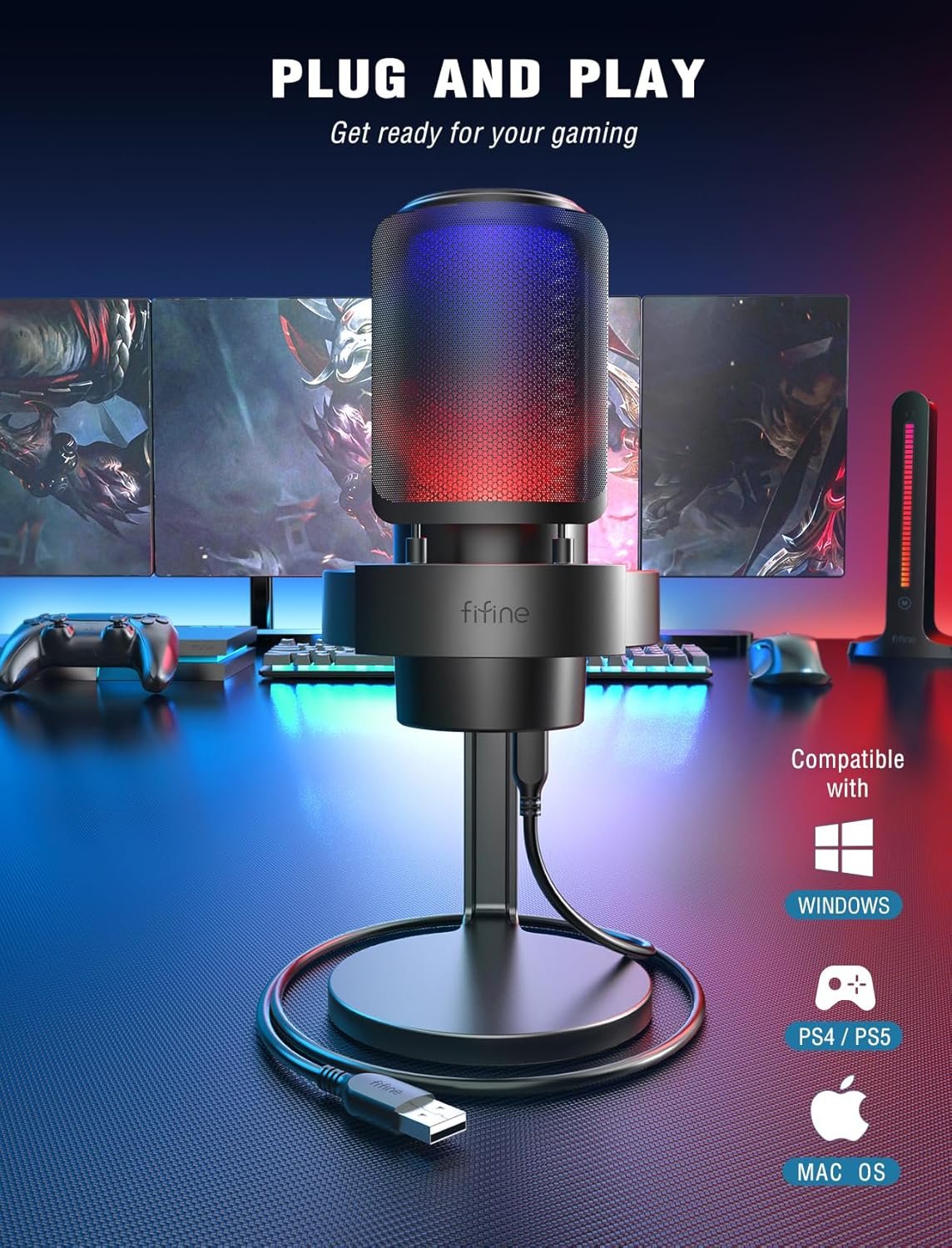 Upgrade your setup with the FIFINE A8 AmpliGame microphone, designed for streamers, gamers, podcasters, and content creators who want clear voice quality with a stylish RGB gaming aesthetic.