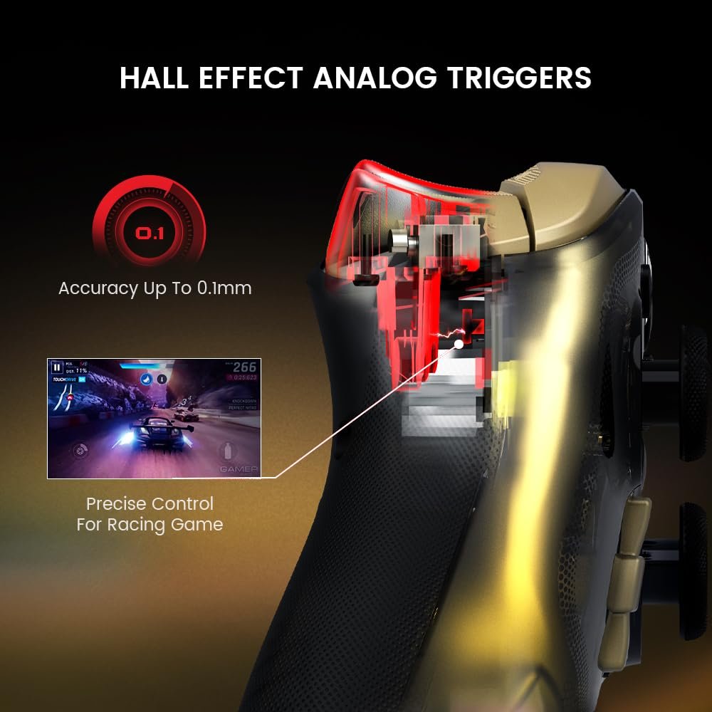 Equipped with Hall Effect joysticks, it delivers higher accuracy and reduces stick drift for long-term reliability—ideal for competitive gaming.