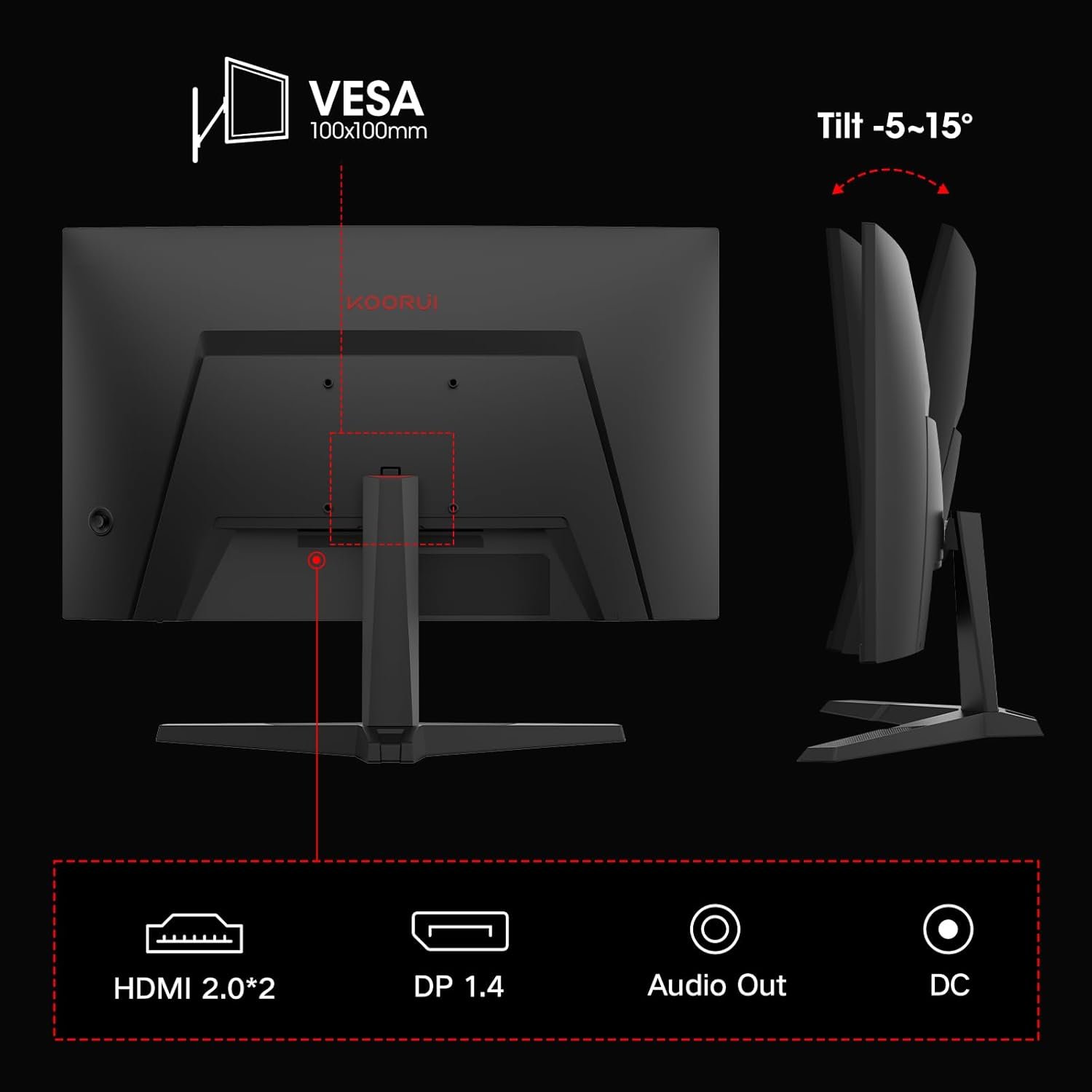 • Ergonomic Visual Comfort: Equipped with DisplayPort 1.4 and dual HDMI 2.0 ports, this monitor supports connection to PCs, laptops. The VESA 100×100mm mounting compatibility allows easy installation on stand or monitor arms for a customized setup. Its adjustable stand tilts from -5° to 15°, ensuring comfortable viewing angles. Plus, Flicker-Free technology and Low Blue Light mode protect your eyes, reducing strain during long gaming or work sessions.