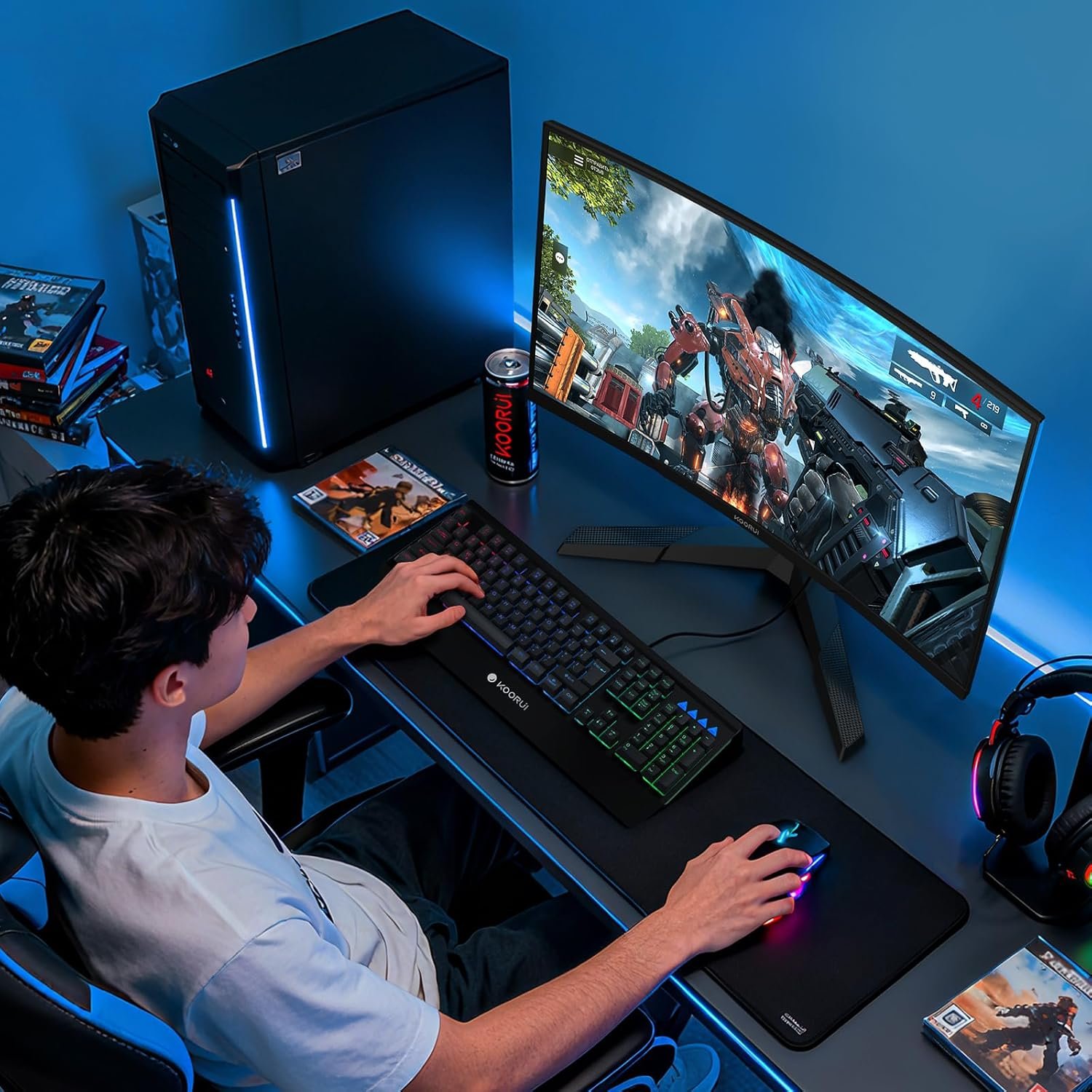 • Fast 180Hz Gameplay: The KOORUI 27 inch curved gaming monitor features fast 180Hz refresh rate and 1ms GTG response time, giving you the competitive edge in every frame. Built for gamers who demand speed and precision, it delivers ultra-smooth visuals without lag. Equipped with Adaptive Sync technology, it significantly reduces screen tearing and stuttering, ensuring a fluid, uninterrupted gaming experience.
