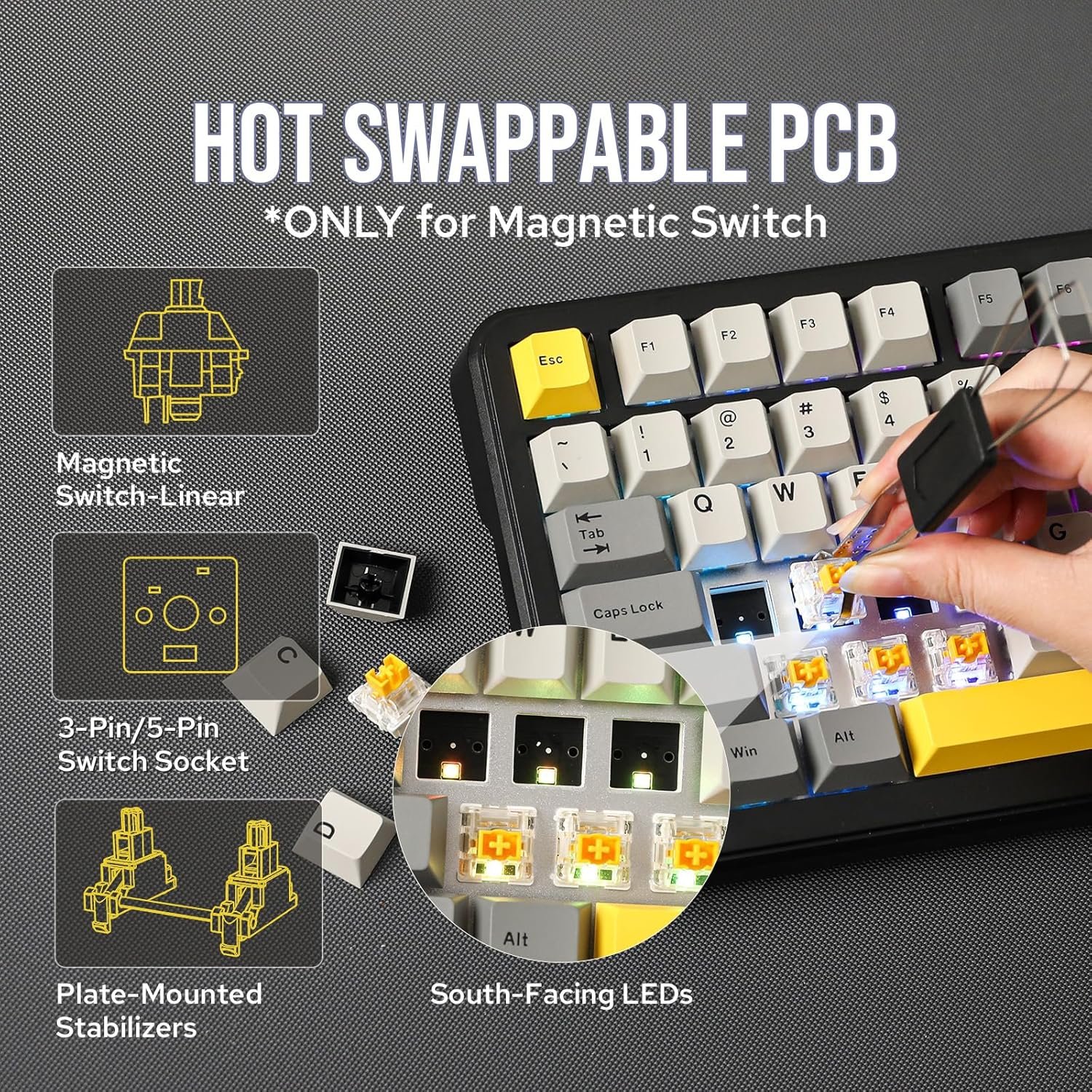 It features a 75% layout (82 keys), saving desk space while keeping essential functionality for gaming and productivity.