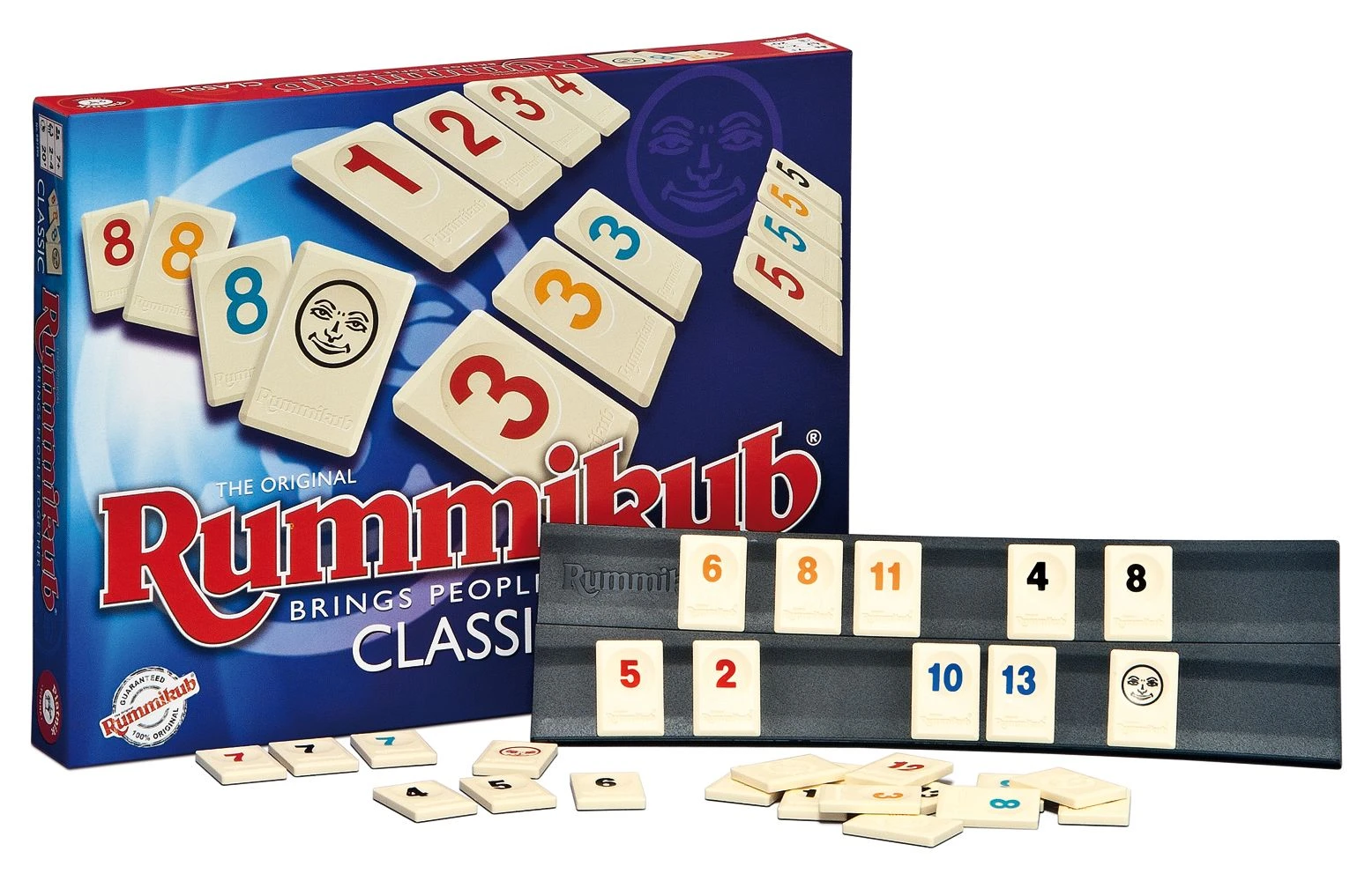 Like Rummy that you play with cards, you try to get rid of all your tiles by forming numbers into runs of 3 tiles or more, or 3 to 4 of a kind. The colors of the numbers on the tiles are like card suits. This game may start rather uneventfully, but when the players start putting more and more tiles in play, the options for your upcoming turns can become more complex, challenging, and exciting (from areyougame.com).