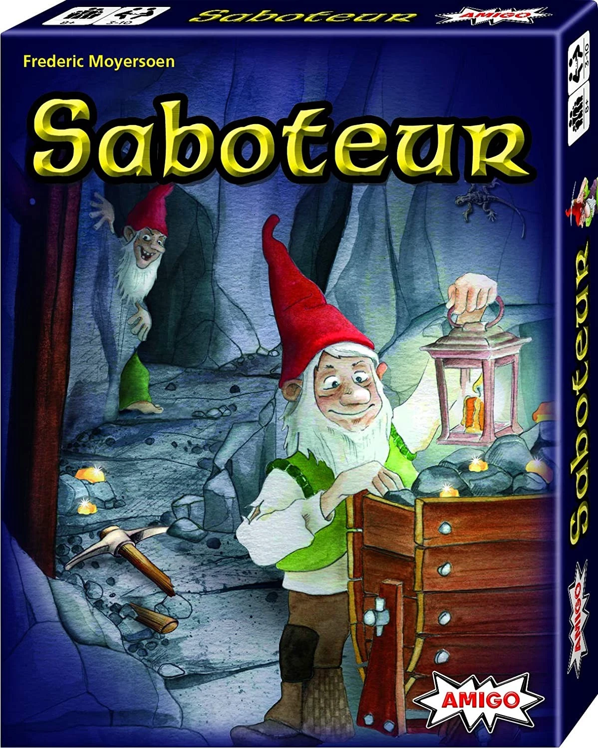 Players take on the role of dwarves. As miners, they are in a mine, hunting for gold. Suddenly, a pick axe swings down and shatters the mine lamp. The saboteur has struck. But which of the players are saboteurs? Will you find the gold, or will the fiendish actions of the saboteurs lead them to it first? After three rounds, the player with the most gold is the winner.