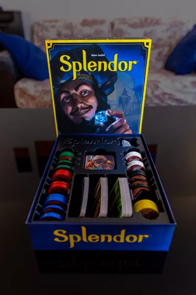 Splendor is a game of chip-collecting and card development. Players are merchants of the Renaissance trying to buy gem mines, means of transportation, shops—all in order to acquire the most prestige points. If you’re wealthy enough, you might even receive a visit from a noble at some point, which of course will further increase your prestige.