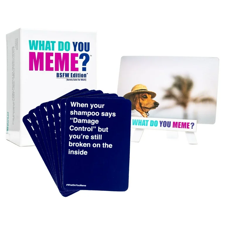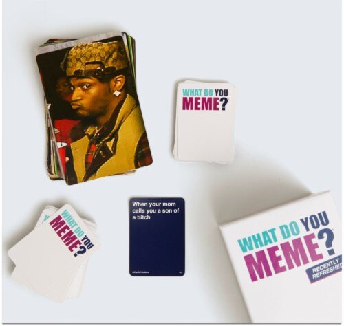 What Do You Meme? is a party card game for the social media generation. Each round, one player takes the role of judge and plays a photo card, after which everyone else plays a caption card to complete the meme. The judge decides the funniest pairing, and whoever played the winning caption card wins the round. Lather, rinse, and repeat.